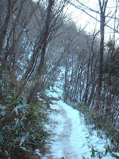 ↑五輪山から伊豆ケ岳までのツルツル凍った道