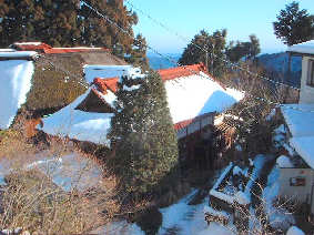 大展望台から御岳神社までは舗装された道をしばらく歩きます。この付近の集落は「御岳集落」といい、昔は御嶽神社の信者の宿泊用の施設が今は一般の観光客向けの旅館のようになっています。とても立派な造りの家が多いです。