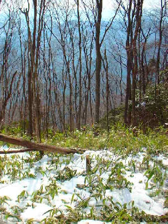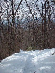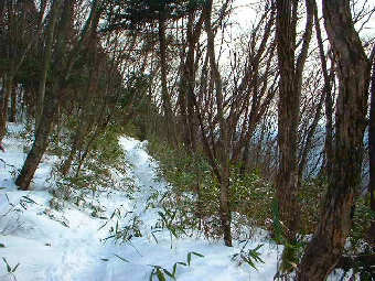 急な斜面や細い尾根もありますが、時期が良ければ眺めのいい林の中の尾根道が続きます。天地山はそれほど眺めがいいわけではなく、標識などには「鋸山」と書かれています。
