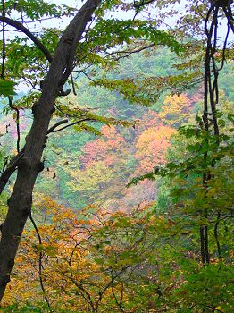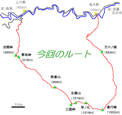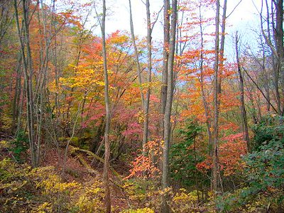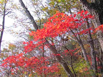 芽ノ丸の先は生藤山となっていて、こちらもコブにあがる道と迂回路の道があるのですが、ちと解りにくいです。地図を頼りにコブを通り、三国峠へ向かいます。紅葉はこの辺りが一番キレイでした。