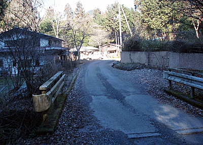 バス停から舗装された道を行きます。 この辺りまで人家もまばらにあります。 |