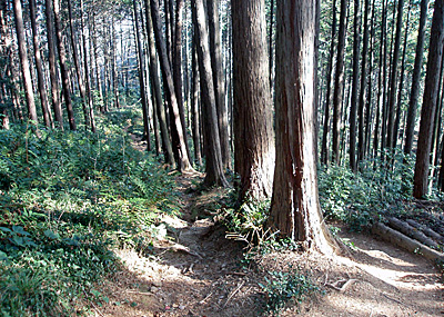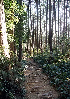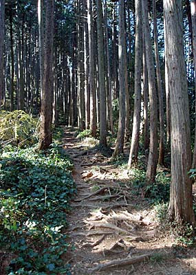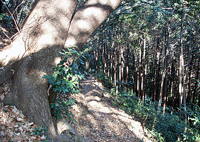 | 途中の眺望はあまりありません。 | 立派な樹が道を覆いかぶさるように伸びてます。 |