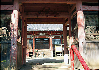 桂木観音の門には仁王様が下界を睨んでいます。 |