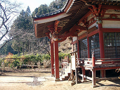| 境内にはブランコや鉄棒があって昔は子供たちがたくさん遊んでいたのでしょうか。 | 境内の右手奥に登山道が続いています。 |