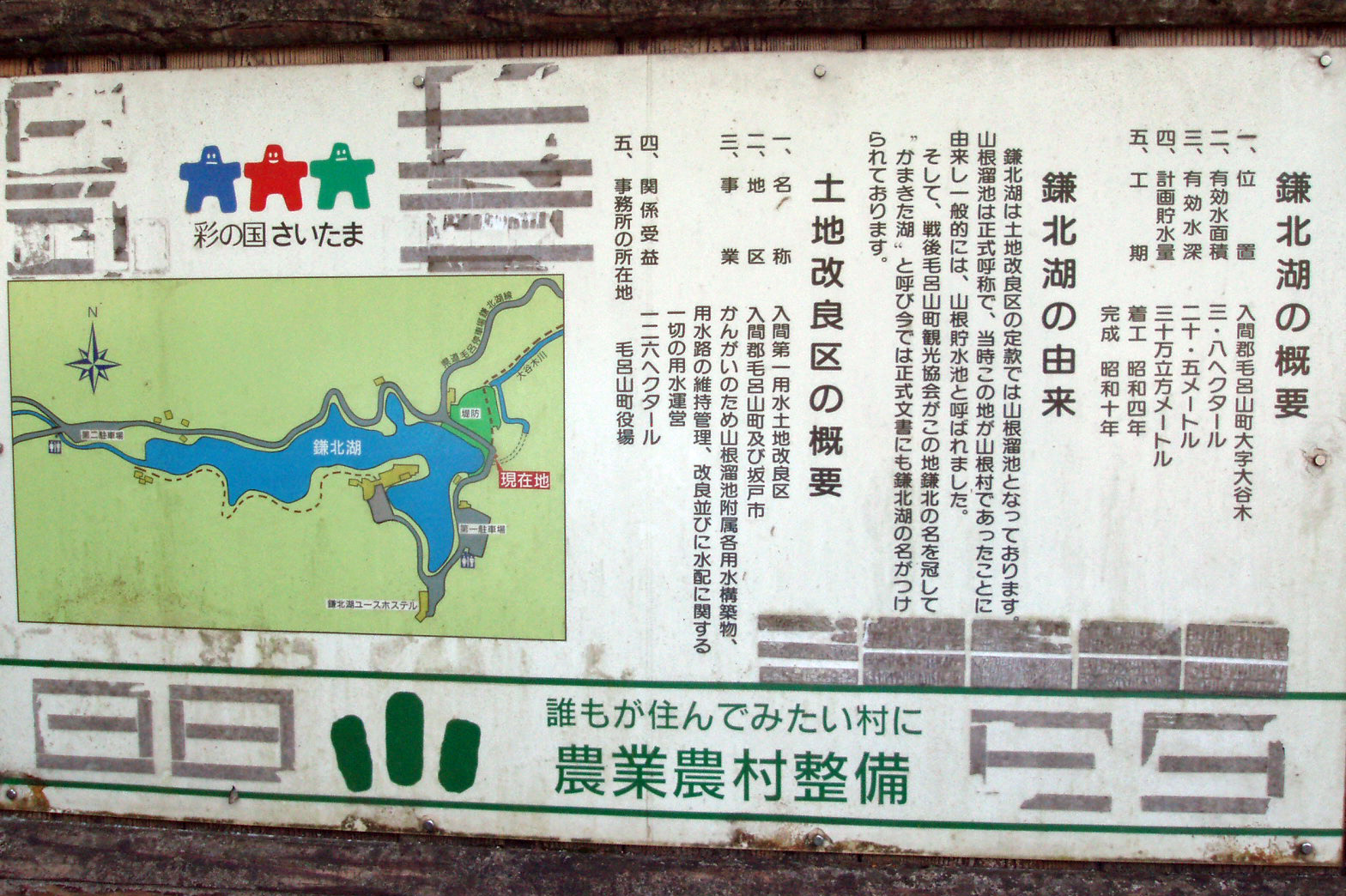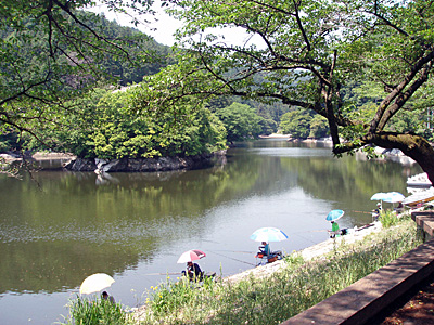 | 鎌北湖は灌漑目的で昭和10年にできた溜池です。 | 釣り人が沢山います。ボートにも乗れます。 |