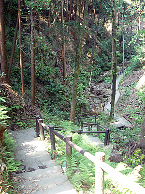 すごい立派な石段です。この右手に宿谷の滝があります。 |