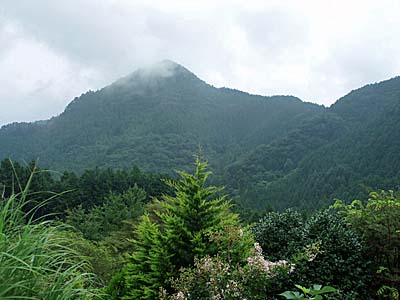 | せっかくなのでもう少し進んでみます。向尾根の集落からは先日登った大築山が見えます。 | 大築山から南西に続く尾根 |