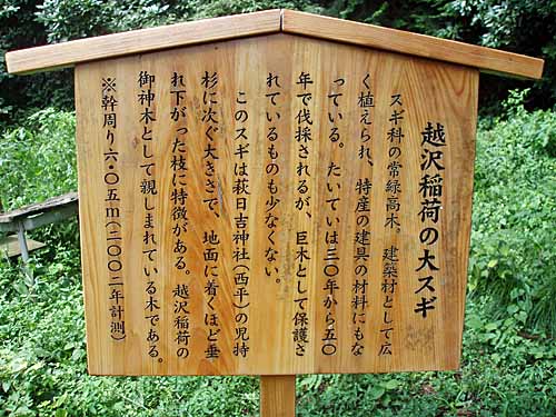 | 越沢稲荷の御神木で幹周りは6.05mあります。 |