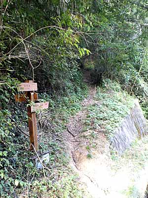 林道の道標から山道に入る。 滝までは0.6kmとなってます。2015/9/30 |