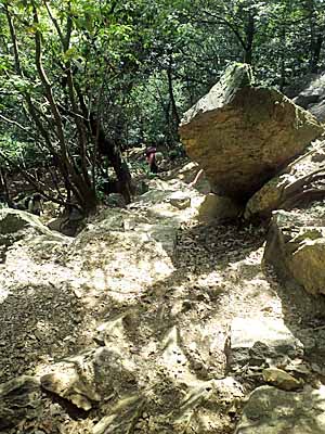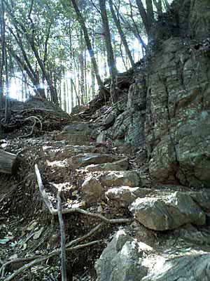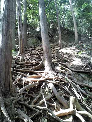 | 男坂に入ると水場がある。 | 根っこが少々あったり |