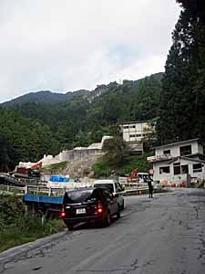 やがて工事中の現場が現れました 右端の建物脇から登山道に入ります。 |