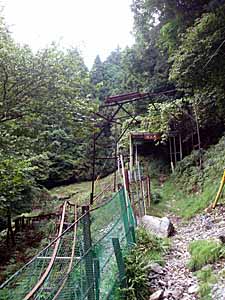 | JFEミネラル武蔵白岩鉱山には鉱山鉄道もありました。2015/3に鉱山が閉山となり鉱山設備の撤去工事が行われていました。 | 作業用モノレールの脇を行きます |