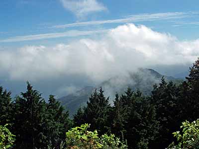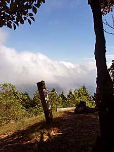 | 妻坂峠の分岐に着いた。 | 見晴らしは良いのでしょうが雲でよく見えません。 |