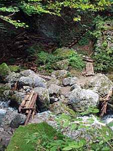 | 木橋を渡ります | 林道(ルート図ピンク色)を結構歩いて浦山口駅に向かいました。 |
