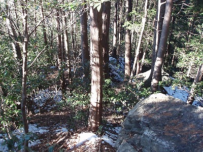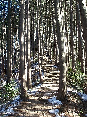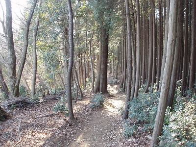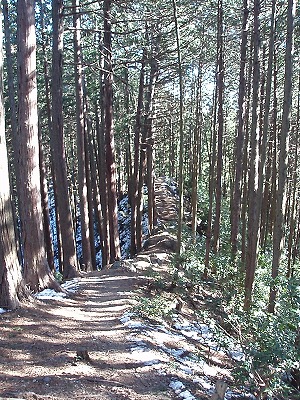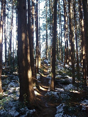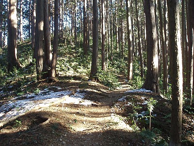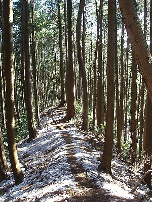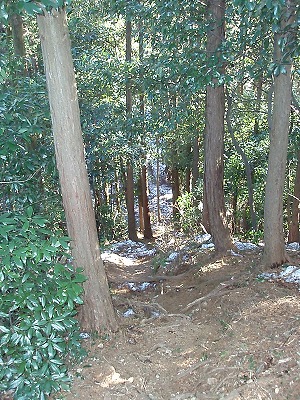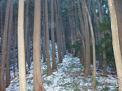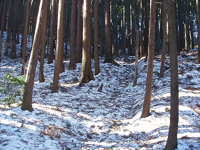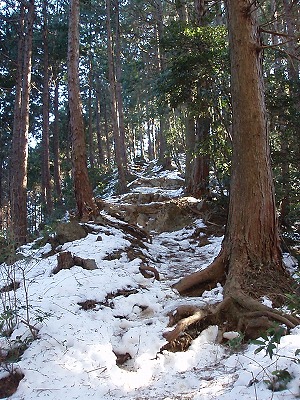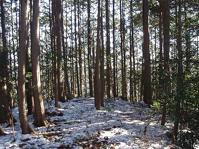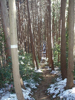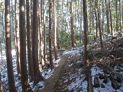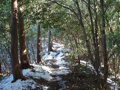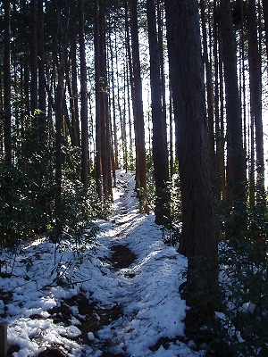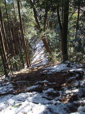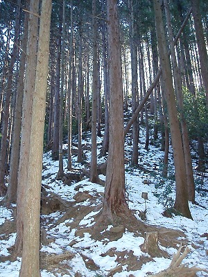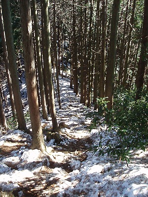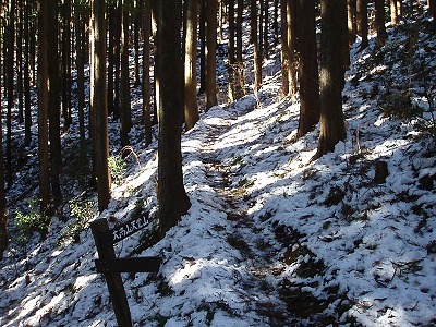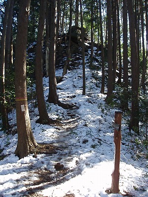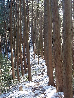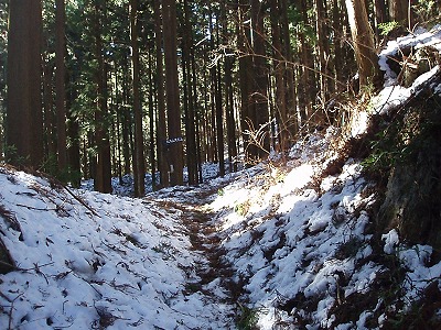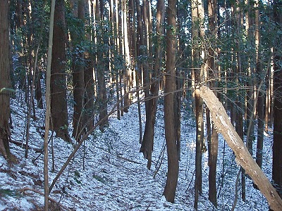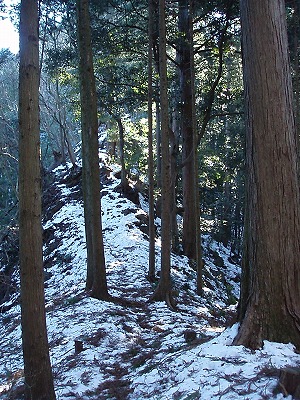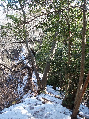 | 吾野駅からは取付がかなり不明瞭 | 雪で余計足場の悪い急斜面を適当に登る |