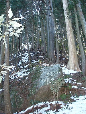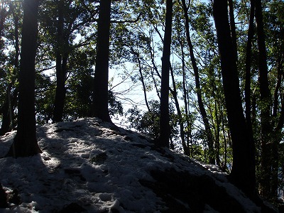 | リュウガイ山?見晴らしは全くなし | 雪のせいか踏み跡も薄い |