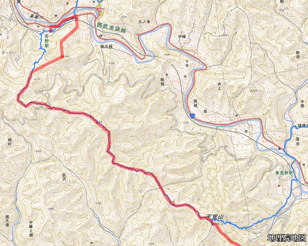 吾野駅~りゅうがい山~大高山~天覚山~永田台団地~東飯能駅