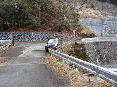 | しばし砂利道 | 砂利道終点の橋を渡る |