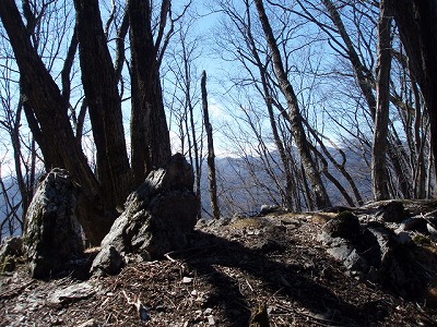 | 此処から先は立入禁止らしい | ずーっと尾根を戻り林道への下降分岐 |