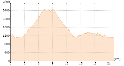 | 今回のコース図(断面)です。(出典:国土地理院ホームページ) |