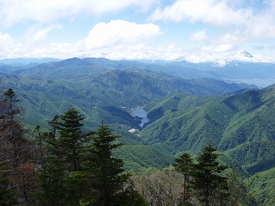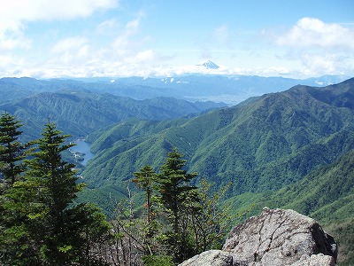 | さらに少し登ると良い展望台が | 広瀬湖と富士山 |