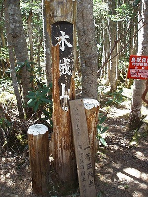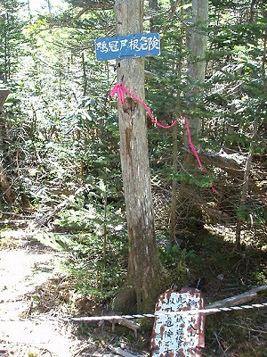 | 鶏冠尾根危険の札 | 木賊山山頂に着いた |