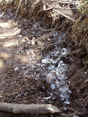 | 霜柱が残る | 急な下り |