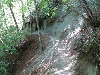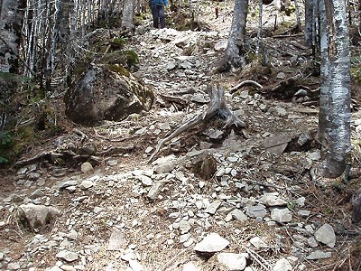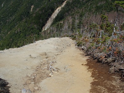 | 崩壊した斜面を下る |