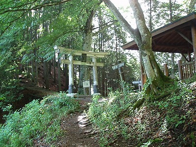 | しばし簡易舗装の道 | 鳥居のある方に進む |
