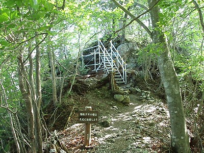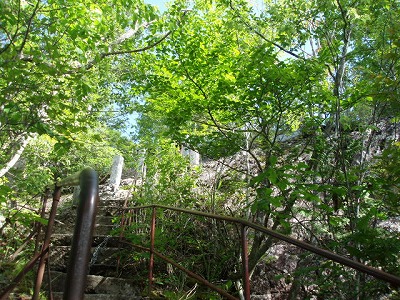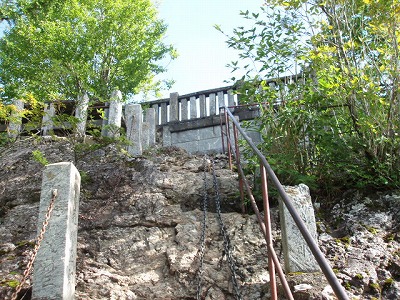 | 手すりもちょっと不安 | 最後は石段も無し 鎖が付いてます |