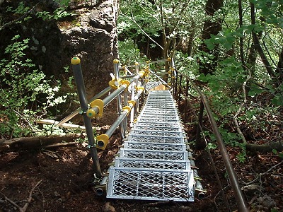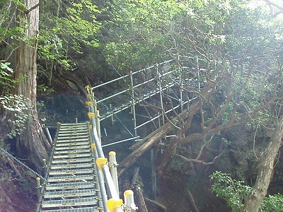 | 仮設材で整備したばかりらしい | 立派な階段を下る |