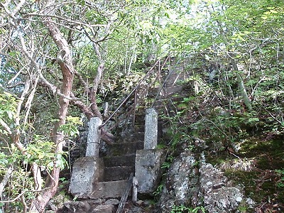 | これがなかったらどうやって行くのだろう | 奥宮手前の石段 かなり急です |