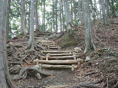 | 地主さんの人柄が出ますな | 丸太一本運動でできた階段 |