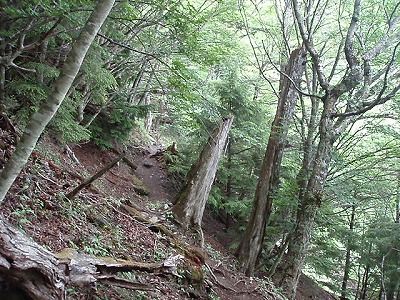 | 下りは道が不明瞭 | 踏み跡を辿り分岐に出た |