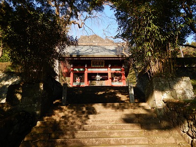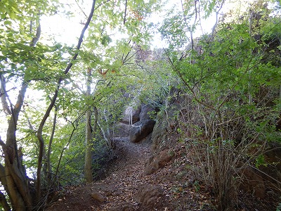 | 神社を右手に通り抜け登山口に | 意外に急登 |