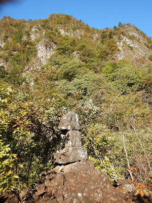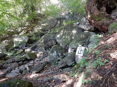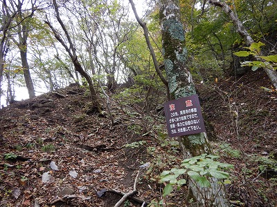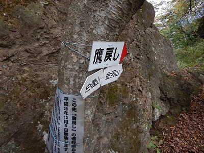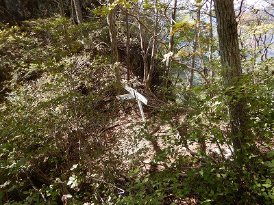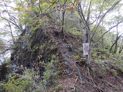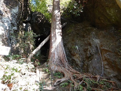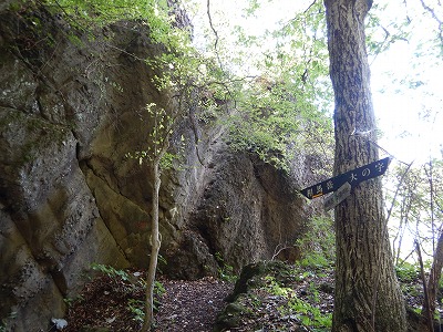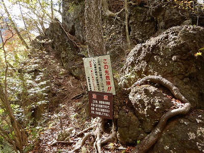 | 来た道を戻り辻に キケンの字 | 左に奥の院 右手鎖場 |