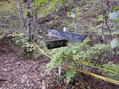 | タルワキ沢分岐 | 危険引き返せの看板 |