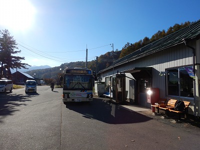 | 信濃川上駅にバスで到着 | 車道を少し戻る |