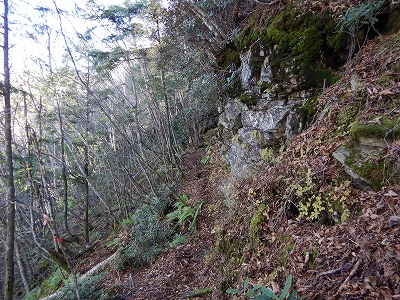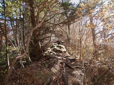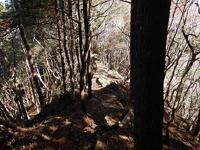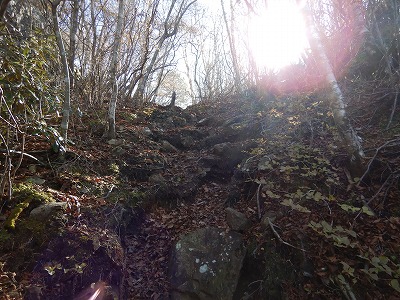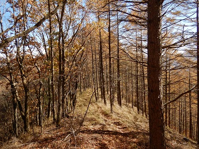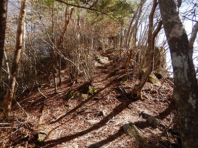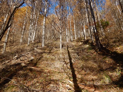 | 結構な急斜面 | 踏み跡も分かりにくい |