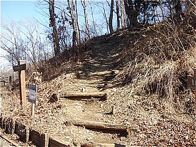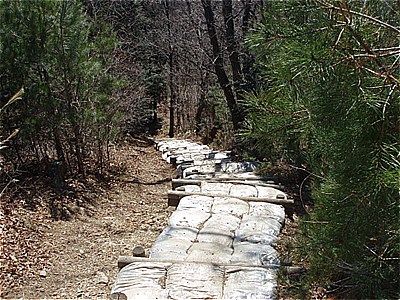 | 土嚢袋で整備された階段 |