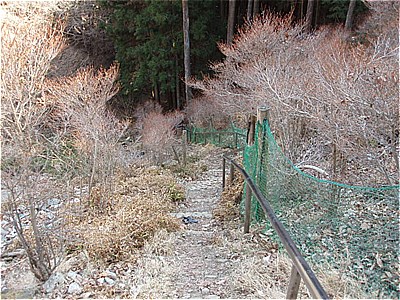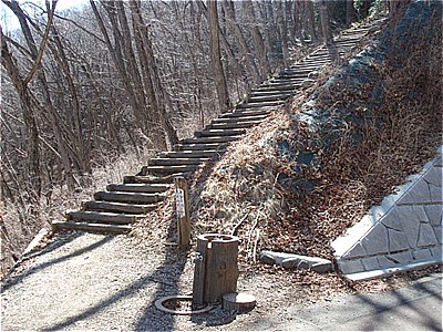| 長い石段を下ると正丸峠 | 食堂の裏へ13:43 |