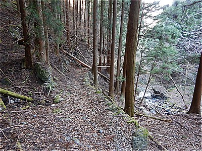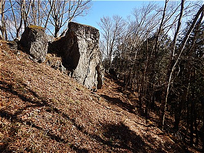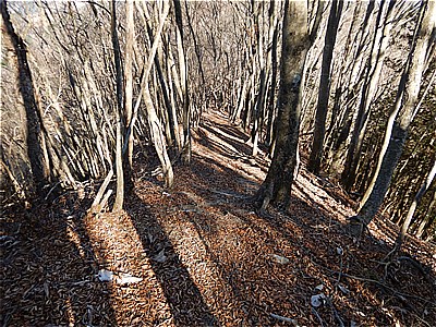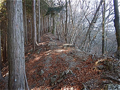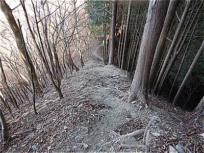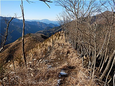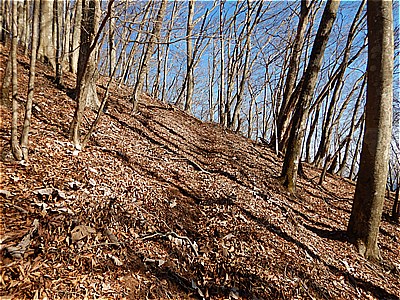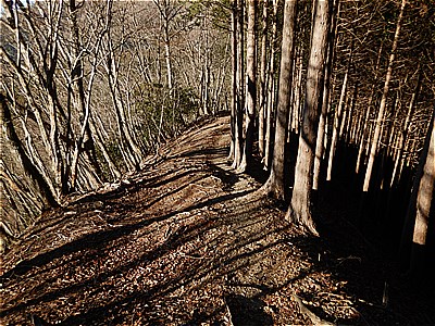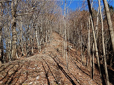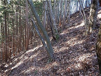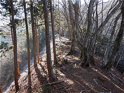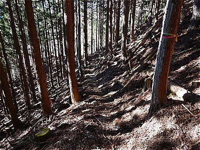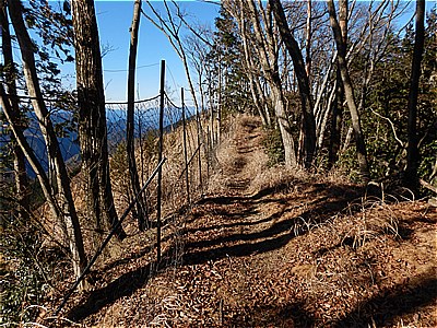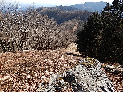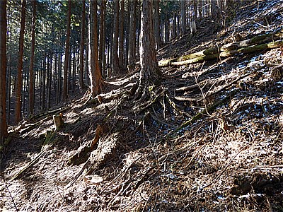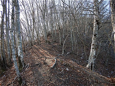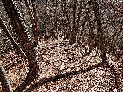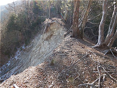 | この辺から尾根を外れます | 一部崩れやすく不明瞭な部分があります |