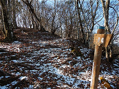 | 尾根に出ます 左に進む8:54 | 道標がありますが反対側から来ると間違えて尾根を進みそう |