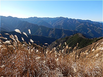 | 左手に眺望がずーっと続きます | ススキが茂ります |