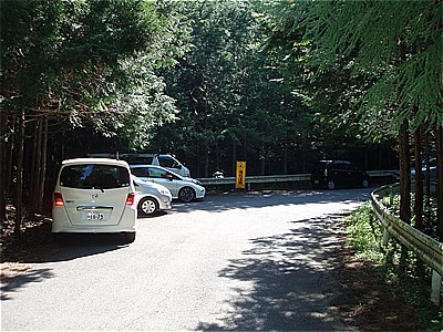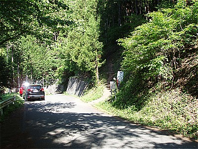 | 坂本登山口の先の駐車スペース 8:16 | 登山口はこちら右に |