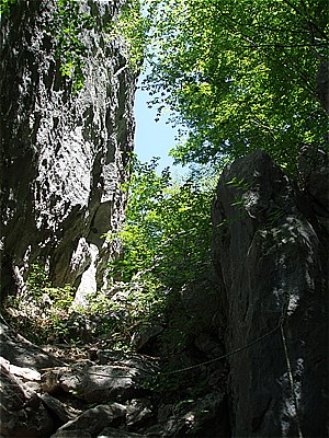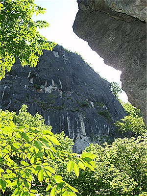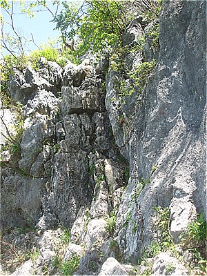| いつもボルダリング?練習者で一杯の崖下を抜ける |