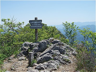 | 二子山・西岳山頂に着いた 11:54 | 上級者コース分岐 |