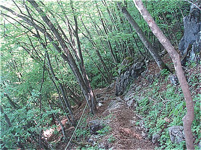 | ガレにロープのあるルートを辿る |