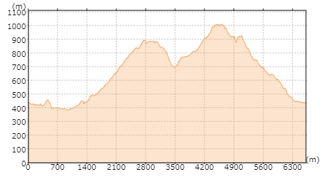 | 今回のコース断面図です。(出典:国土地理院ホームページ) |