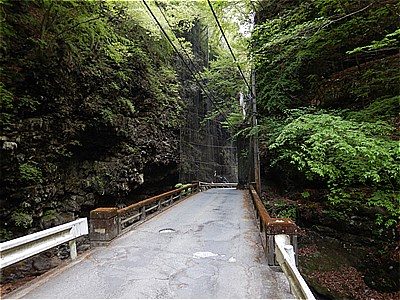 大久保集落に向かって車道を戻る。両側がすごい崖 |